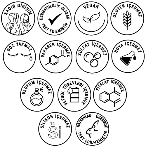 Dermatolojik olarak test edilmiştir. Boya ve Gluten içermez.